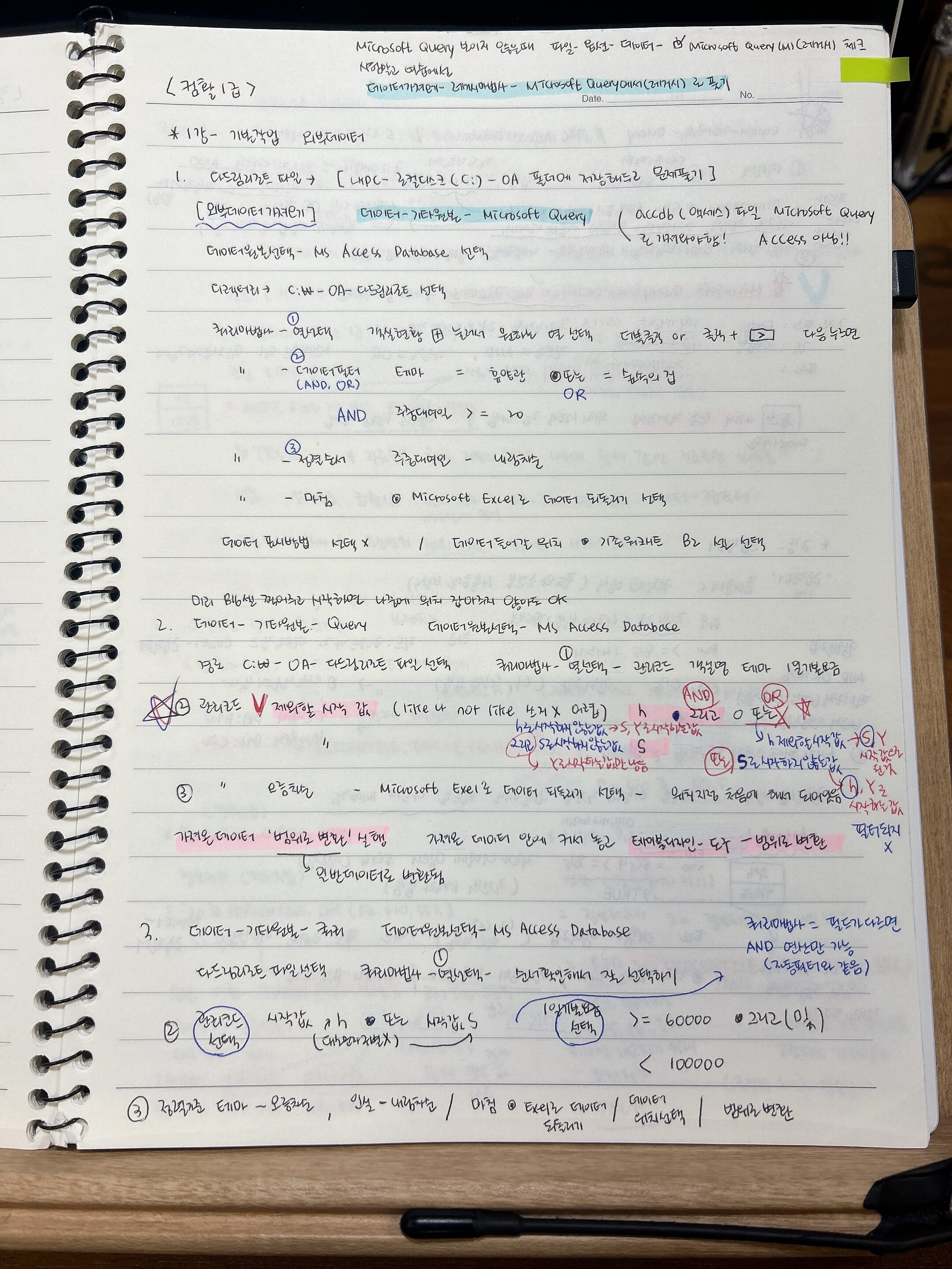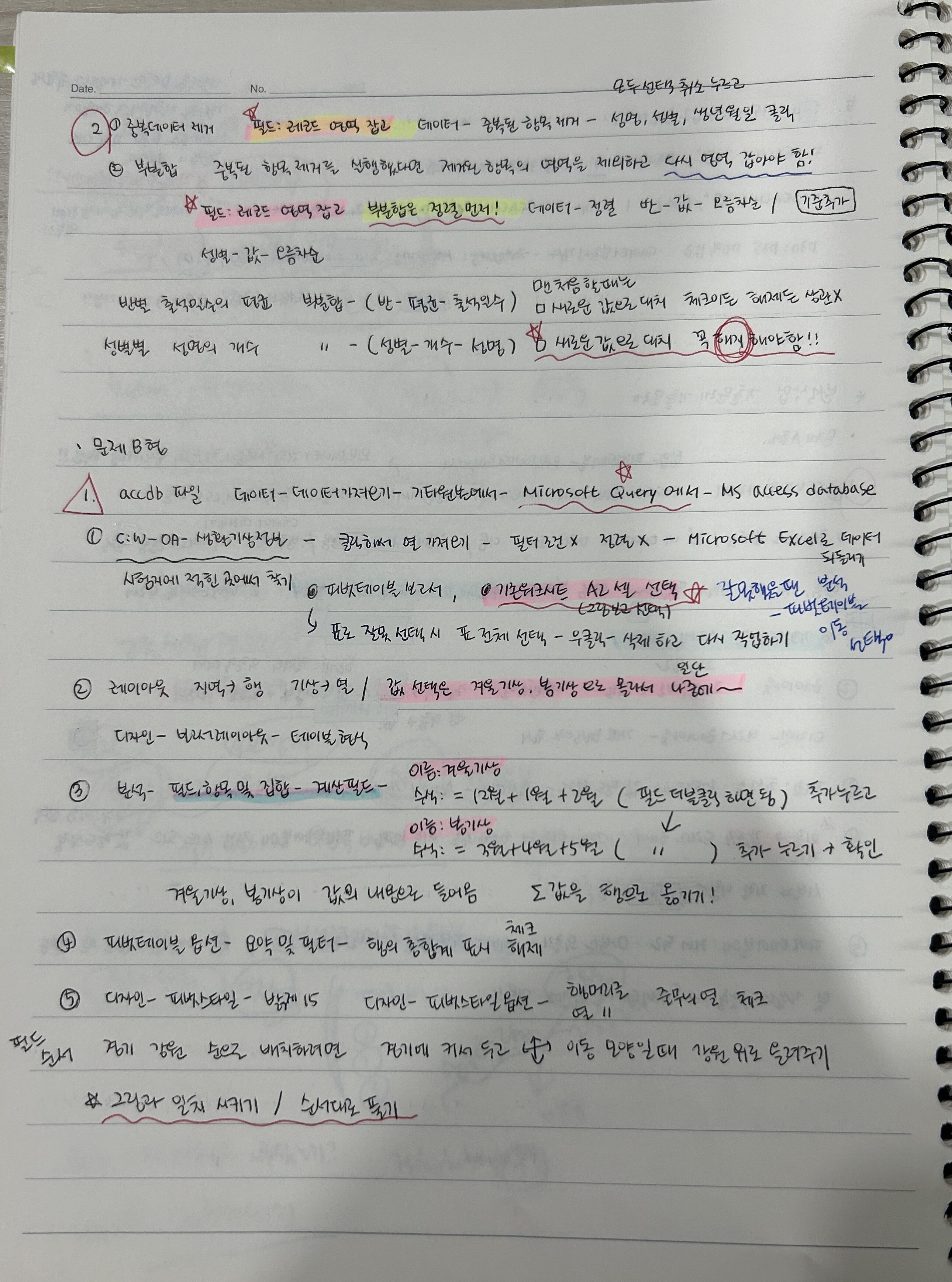 엑셀- 계산작업이랑 엑세스- 문제2 나머지 문제, 문제3 나머지문제, 쿼리 문제가 난이도가 있어서 문제를 한번 보고 풀이 방법이 바로 생각나지 않으면 다른 문제로 넘어가려고 했어요