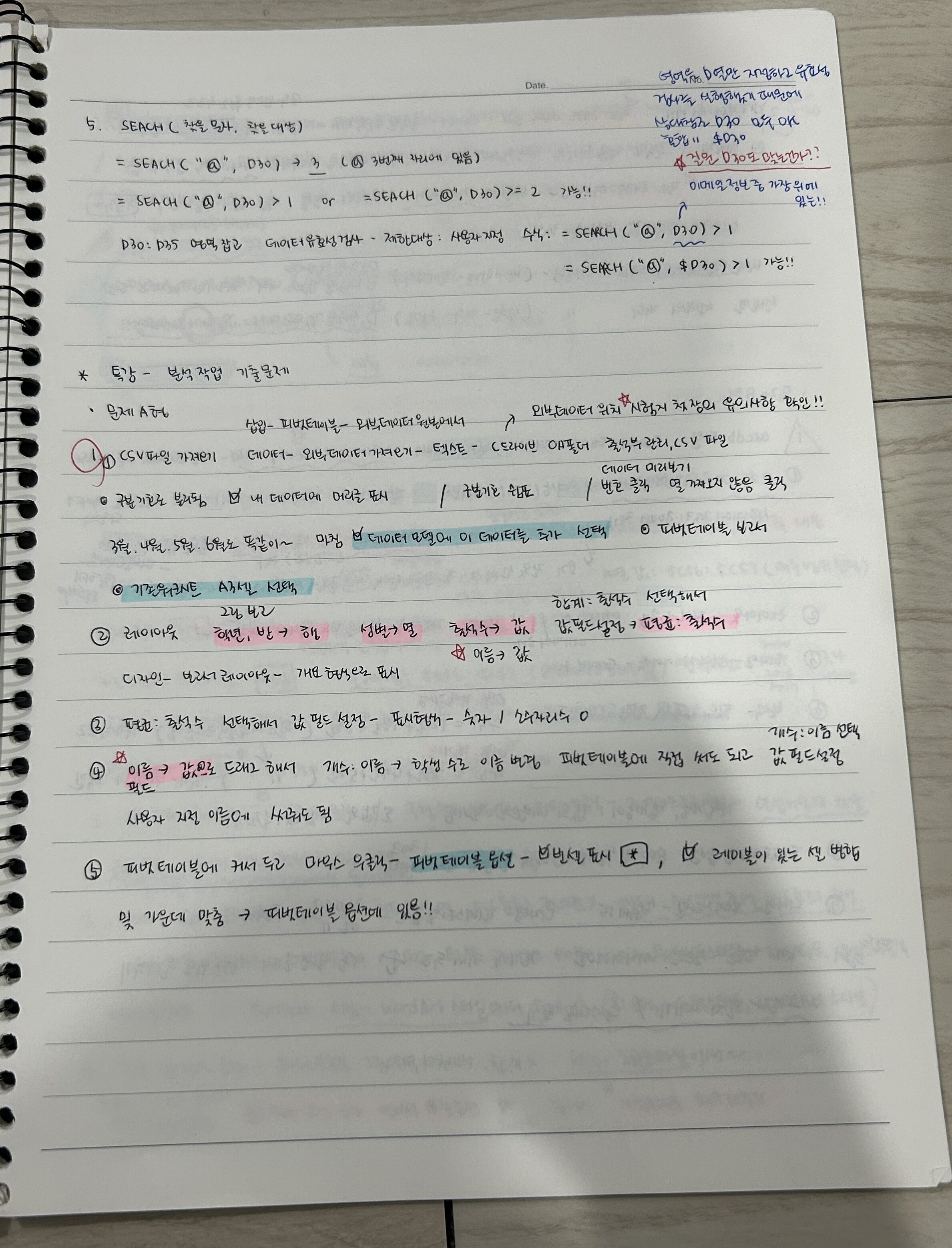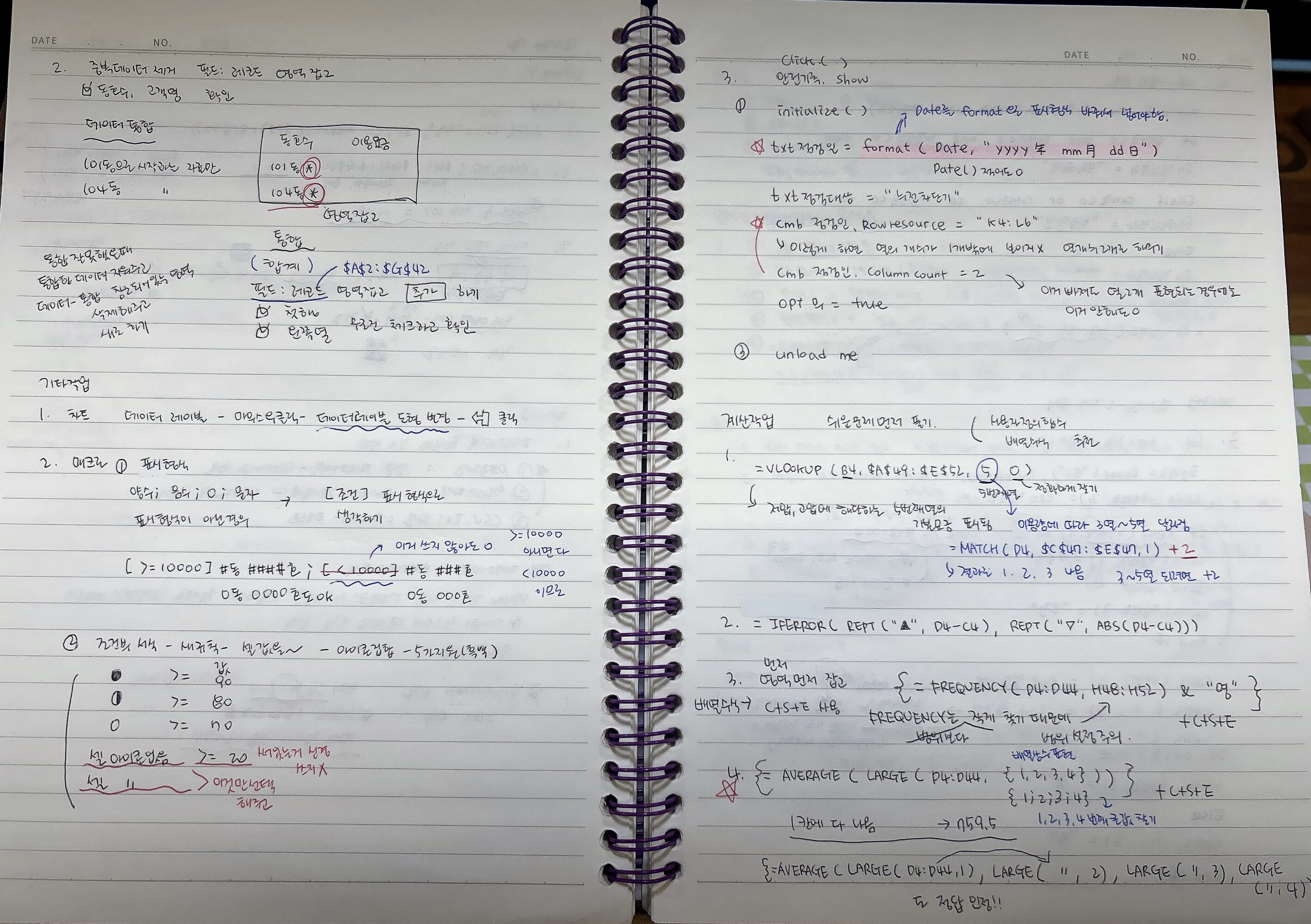 첫번째 강의 들을 때 노트에 필기를 하면서 들어서 나중에 강의 안 듣고 혼자 반복할 때에도 모르는 부분이 있으면 강의를 켜지 않더라도 필기를 보면 되니까 좋더라구요
