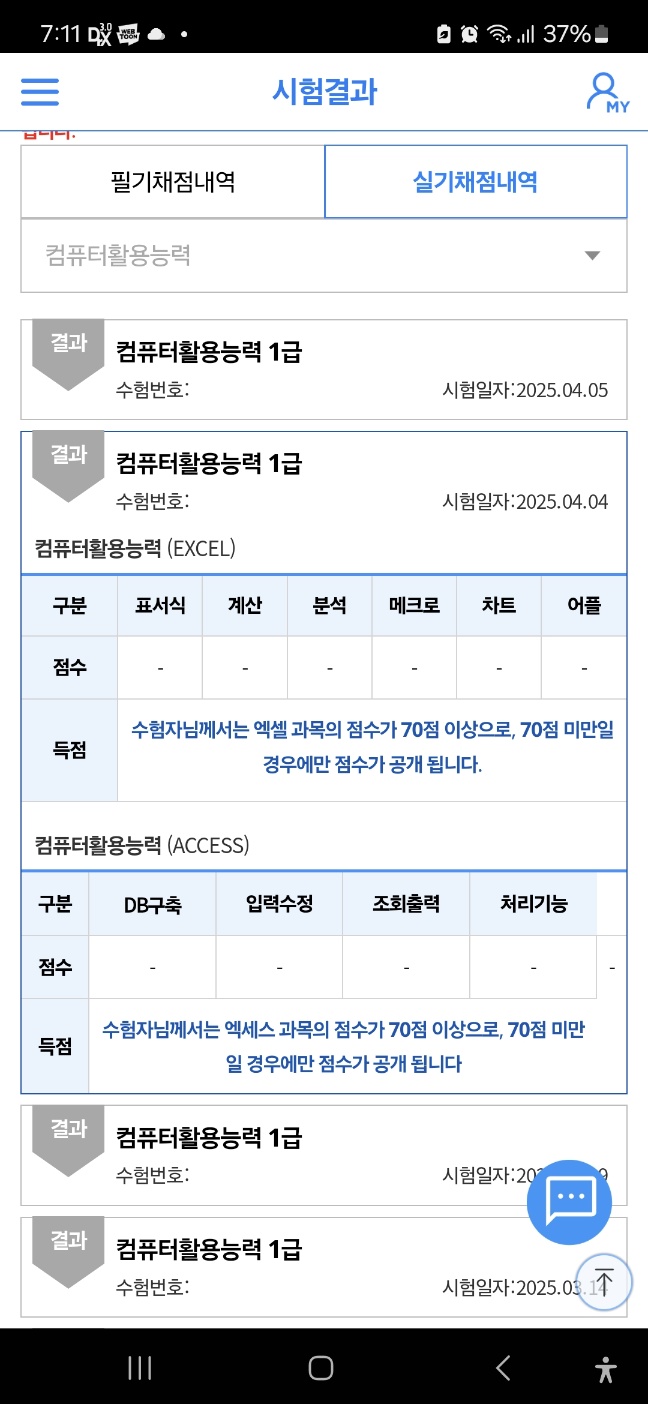 컴활 1급 7트 합격.. (2)
