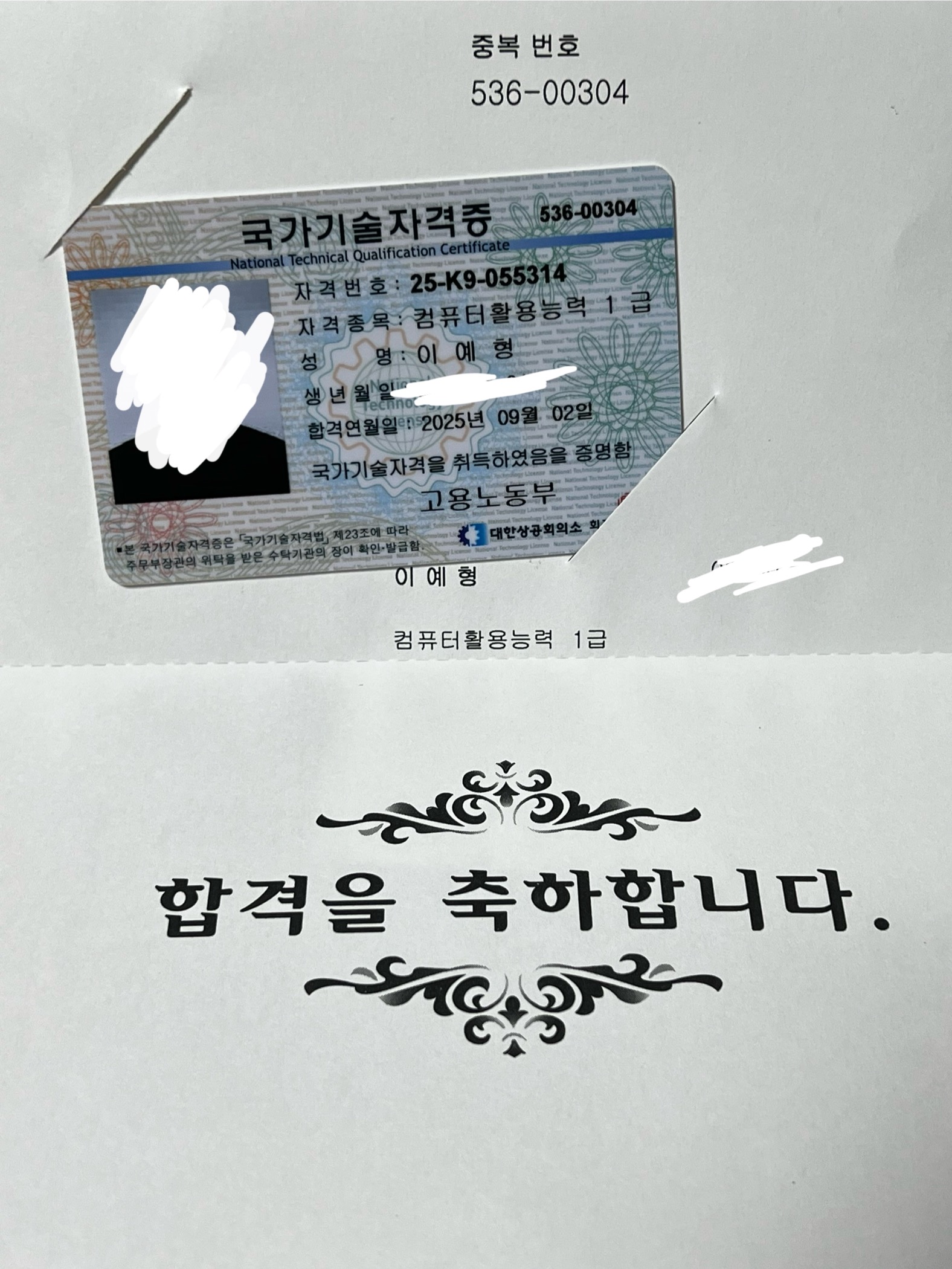 휴학생의 휴학 목표 이루기 컴활 1급 4트 합격 (2)
